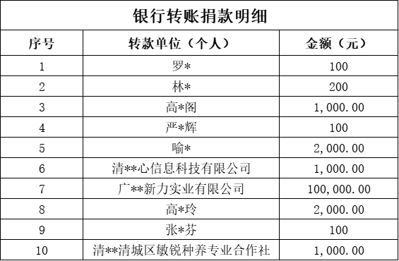 【银行转账捐款明细】