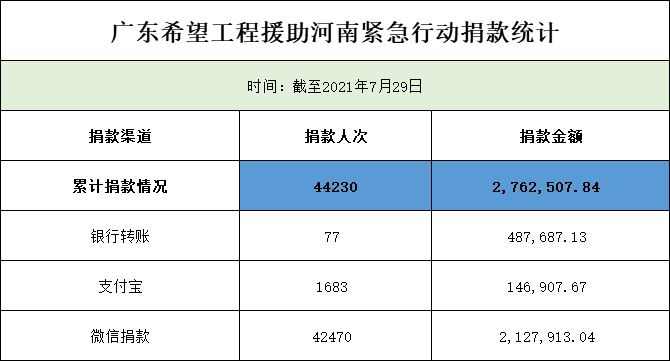 现将7月22日至29日捐款情况