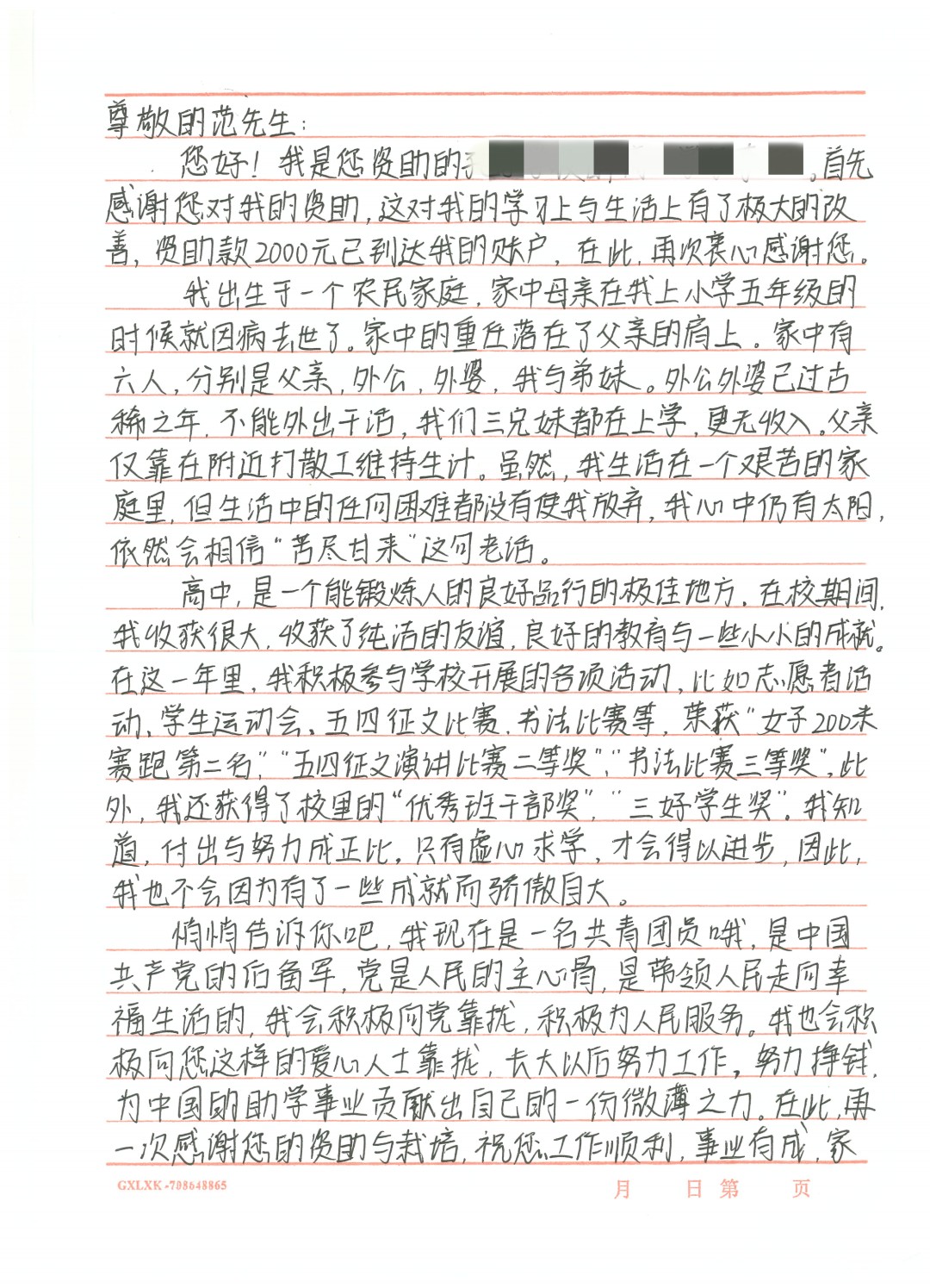 最近,许多爱心人士反馈说收到了受助学生的感谢信,很是感动。今天,我们和大家分享这三位高中生写的信。处在人生关键时期的他们,会有什么样的想法?一起来了解吧!