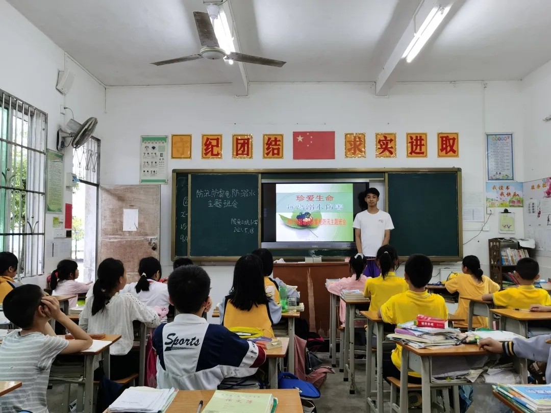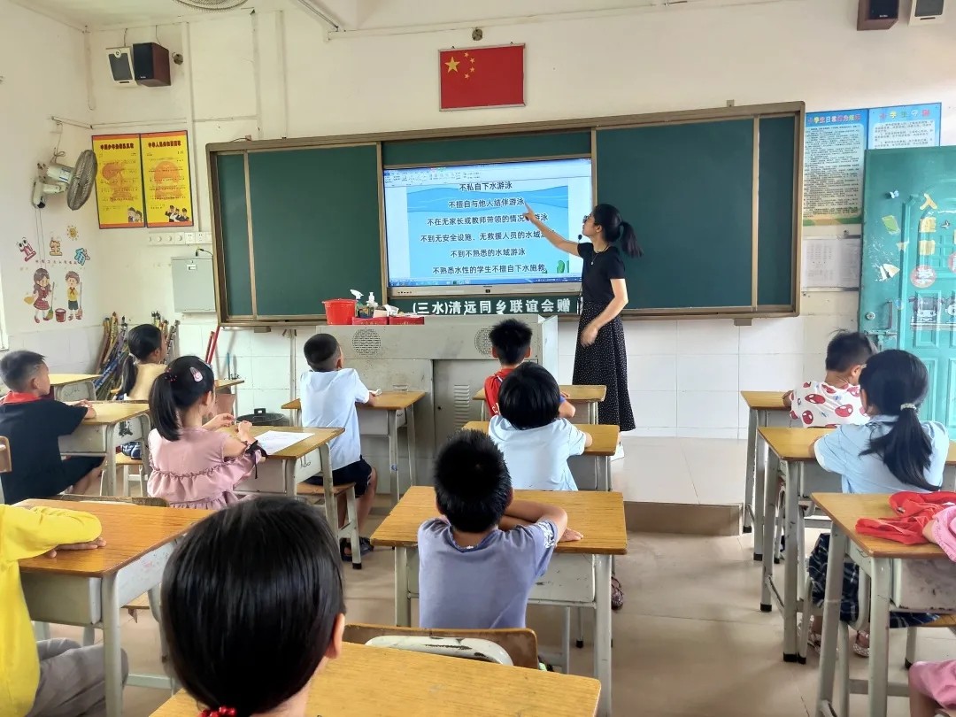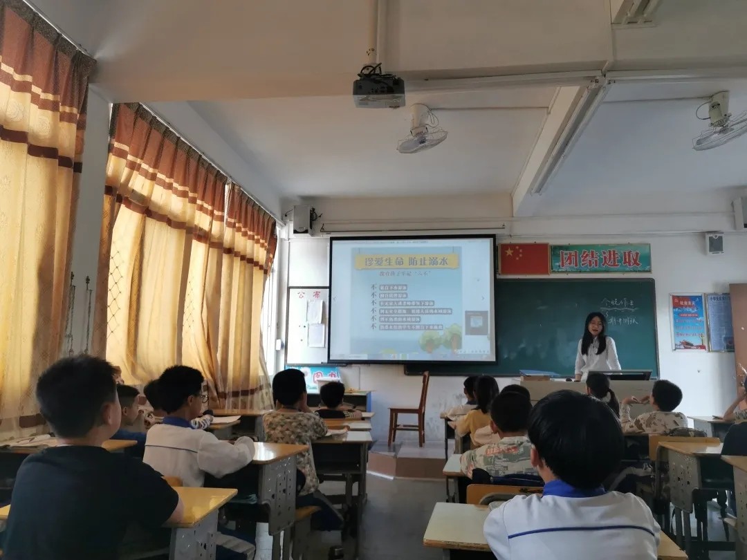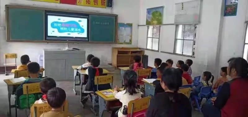河源市连平陂头三坑小学何远锃为不同班级学生科普防溺水知识