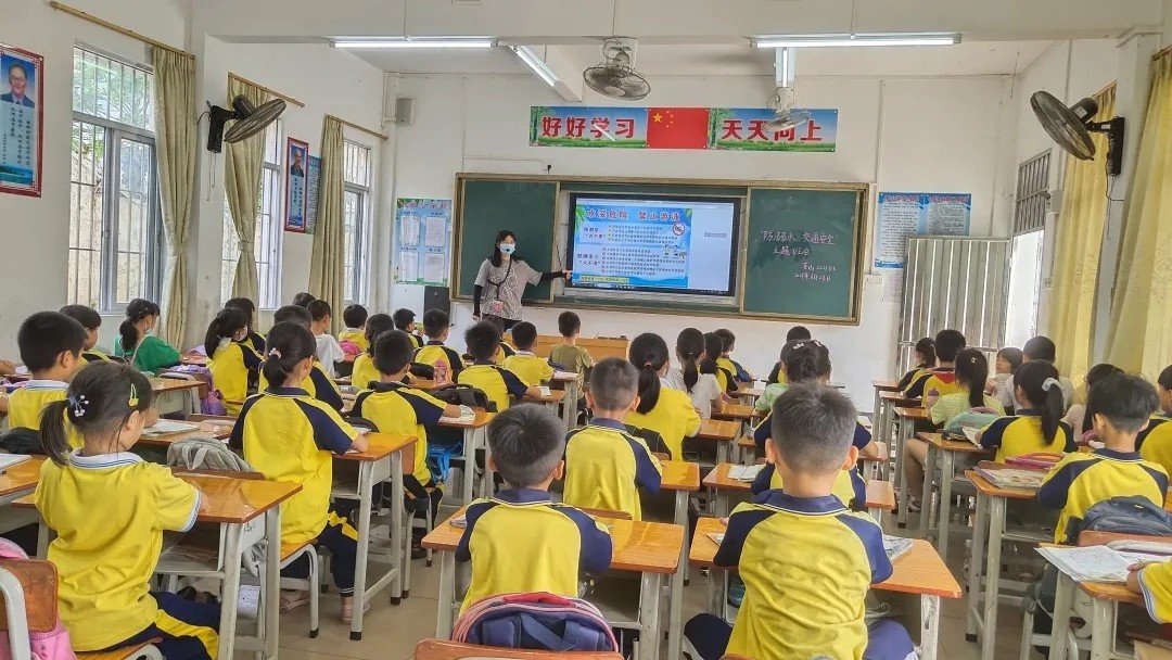 吴川市塘缀镇三丫小学骆宇婷老师正在上防溺水安全课