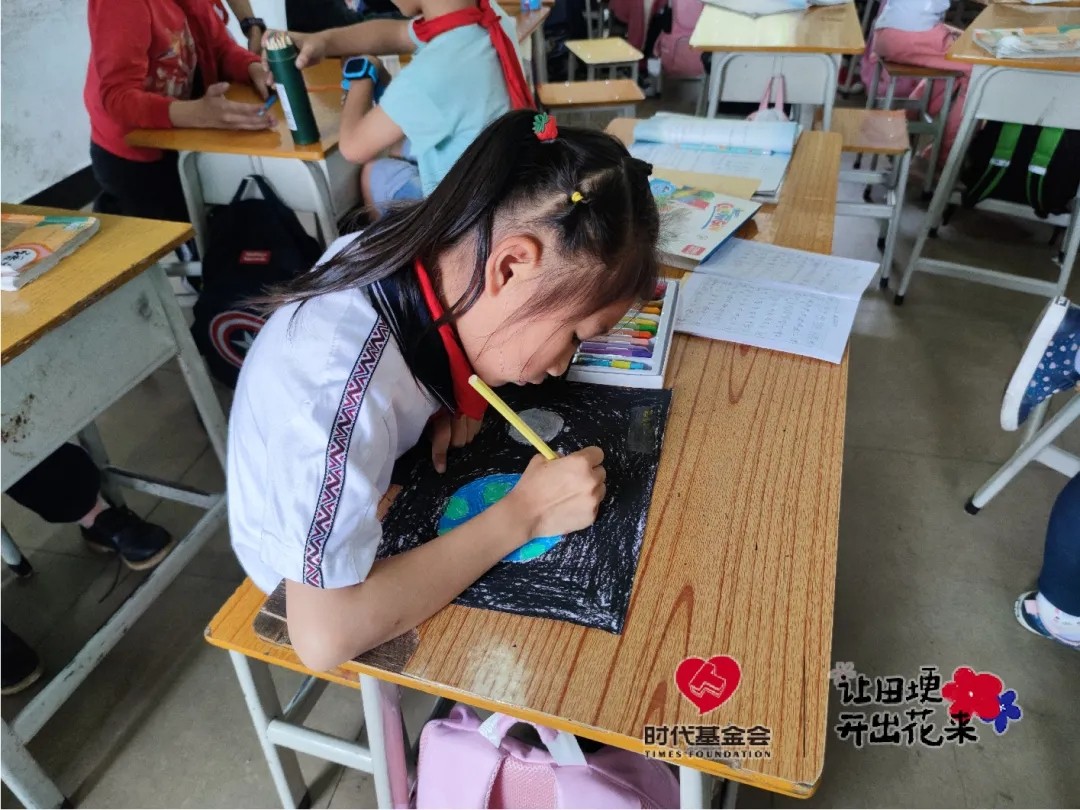 说来也巧,绘画比赛结束后不久,时代基金会“田埂花开”发起了“教师支持项目”,李嘉颖决定抓住机会申请一笔资金,给福堂中心小学的孩子们办一个小型的校园画展。