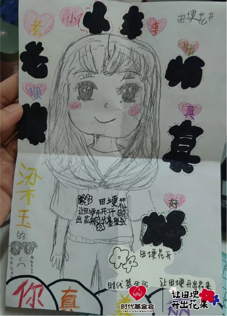 在得知李嘉颖即将结束支教时,一个女孩送了她一个大贺卡。里面有一张画着李嘉颖的画,还写着“小李老师你真好”。