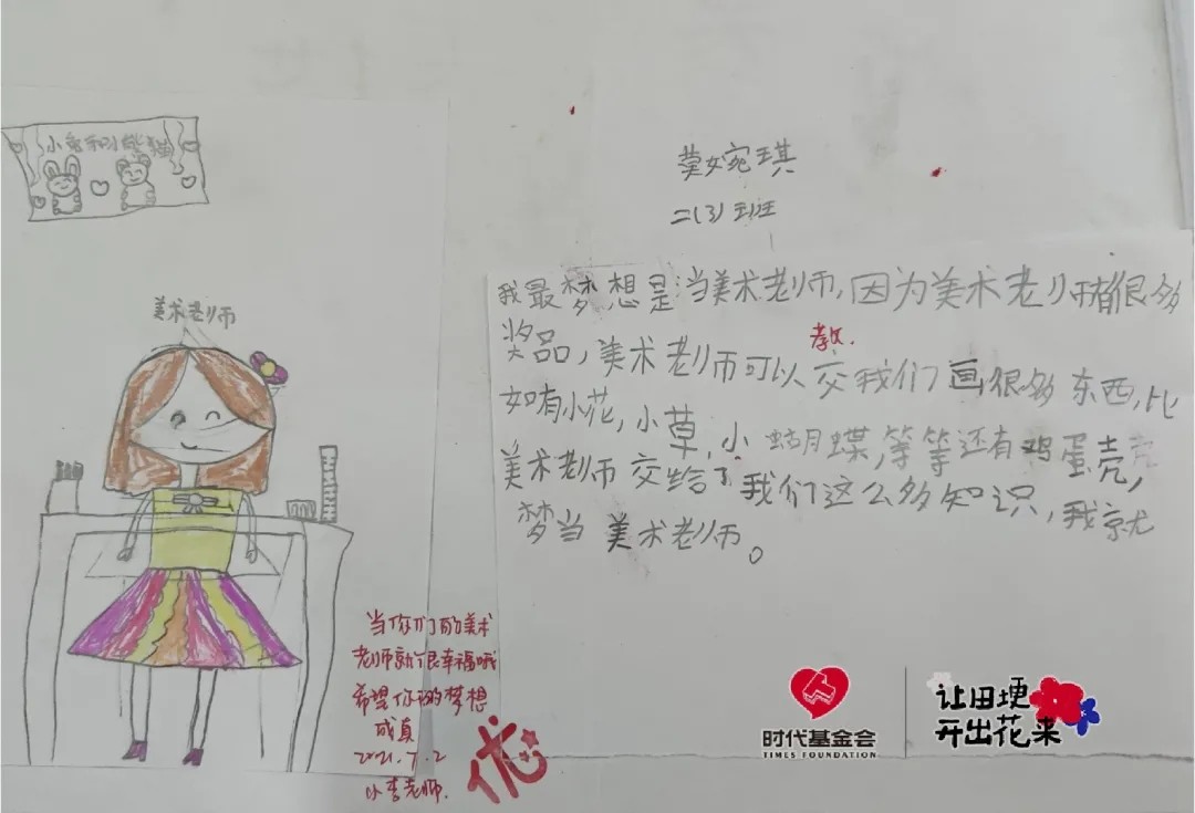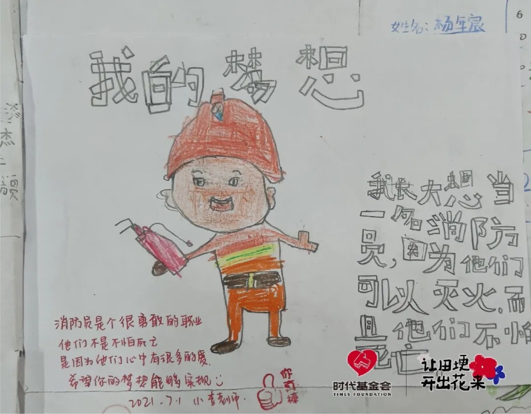 在最后一节课上,李嘉颖出的题目是《我的梦想》。孩子们都格外认真地描绘着自己的梦想,宇航员、医生、歌手、消防员……