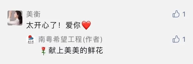 宋阿姨在《当年参加南粤会亲的女孩,要上大学了!》推文留言,表达对彩琳的鼓励。