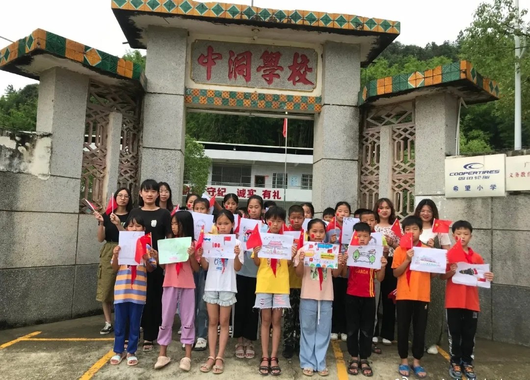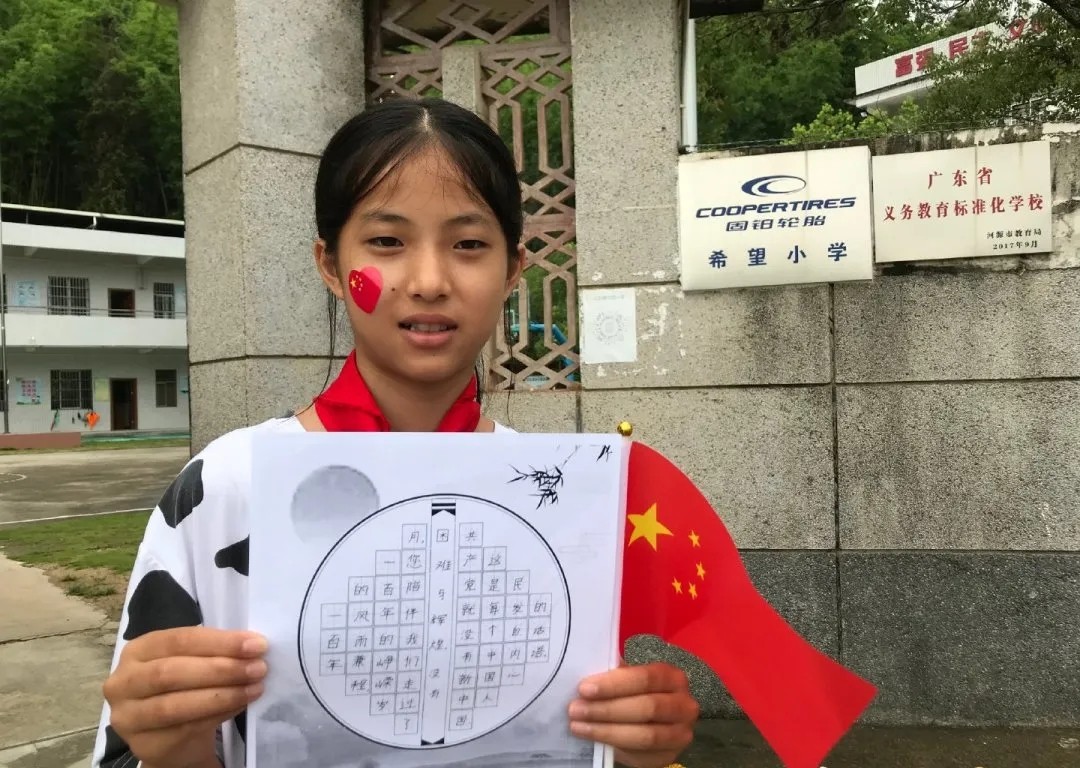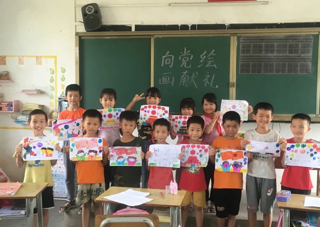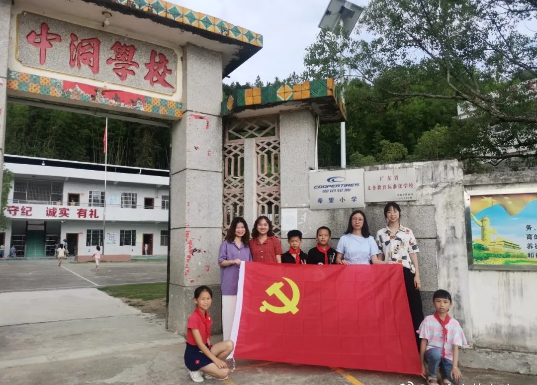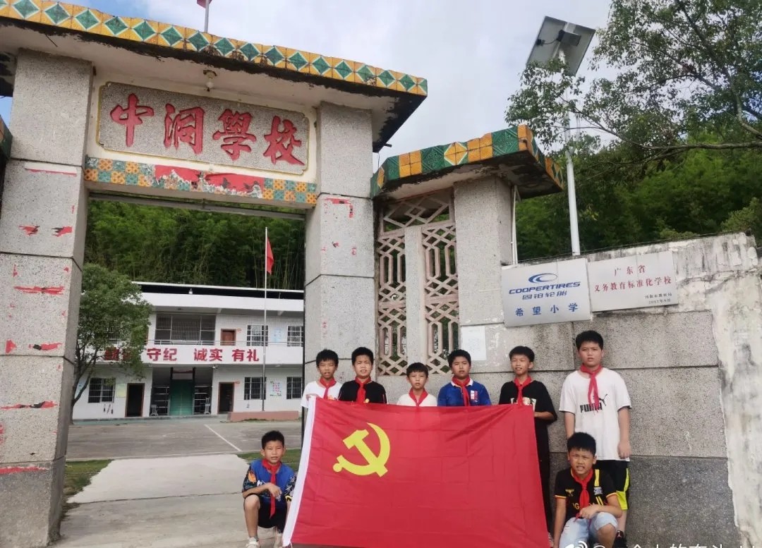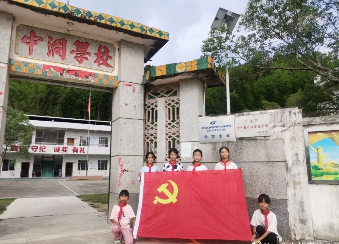 河源市东源县义合镇中洞小学师生和党旗合影