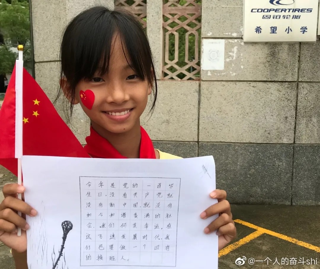 今年是党的一百岁生日,没有共产党就没有新中国,就没有如今和谐美好的社会。我们何其幸运!在这飞速发展的时代,我们也要做一个“四有”的接班人。
