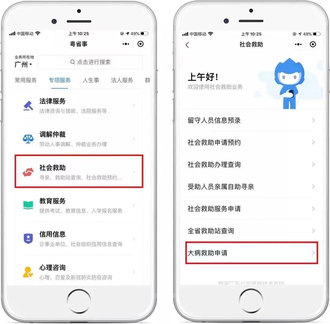 有需要的患者,可通过广东省12355青少年综合服务平台热线12355-4-1进行求助。或通过“粤省事”小程序,首页下滑选择“社会救助”,点击“大病救助申请”获取相应服务。