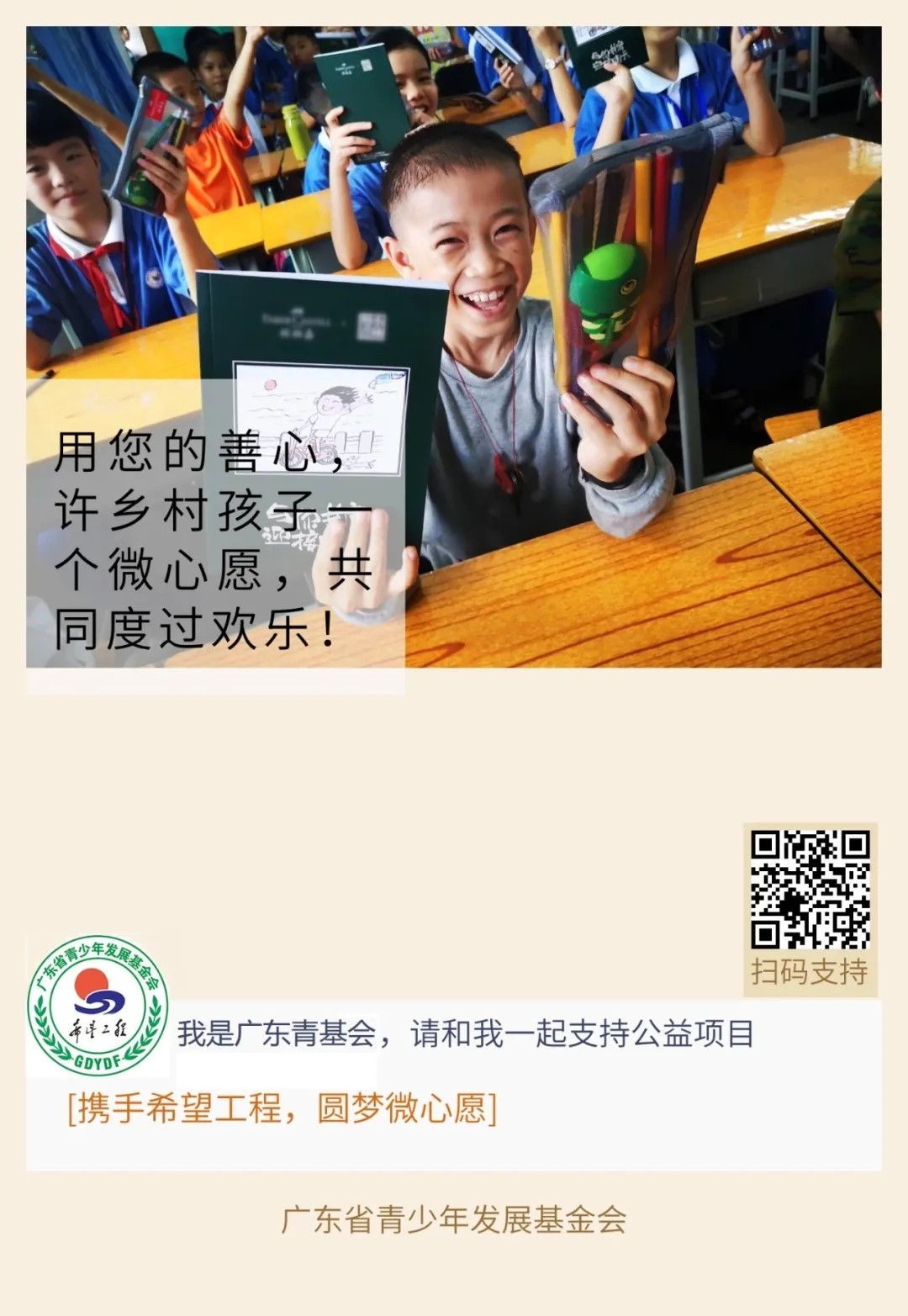 希望工程微心愿旨在通过动员爱心人士认领微心愿的形式,为乡村孩子实现微心愿,为他们的家庭减轻负担,激励学生努力学习、奋发向上,以小小“微心愿”,传递大温暖。