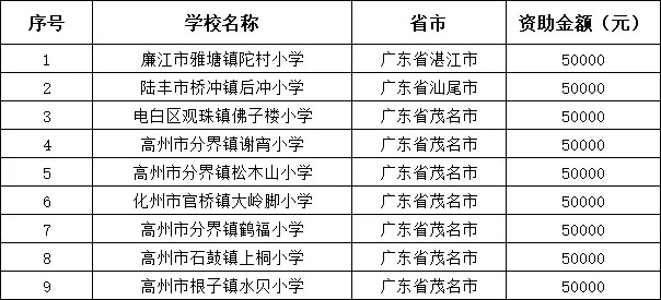 项目共计为9所学校援建幸福厨房,资助金额达450000元。资助名单详见下表 ↓