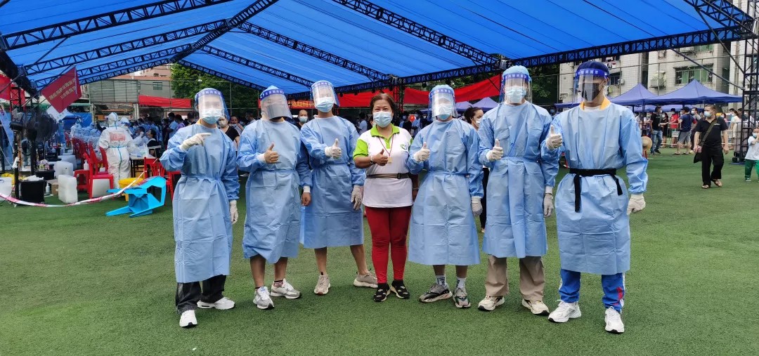 黄丽丽与她的机构老师们来自花都狮岭,每天来回60公里支援荔湾、海珠。