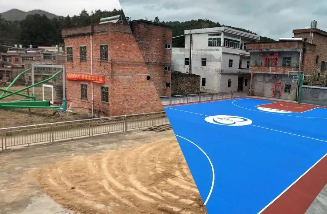 (豪群公益基金会建设球场对比图)