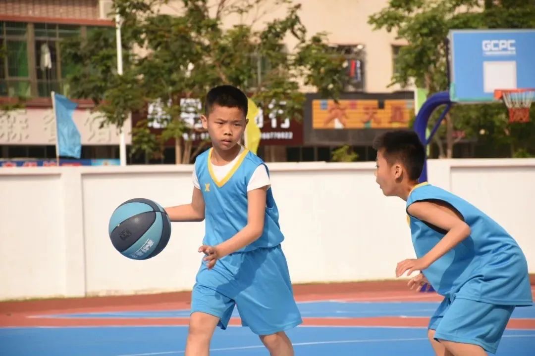 新球场上,孩子们快乐地进行体育竞技