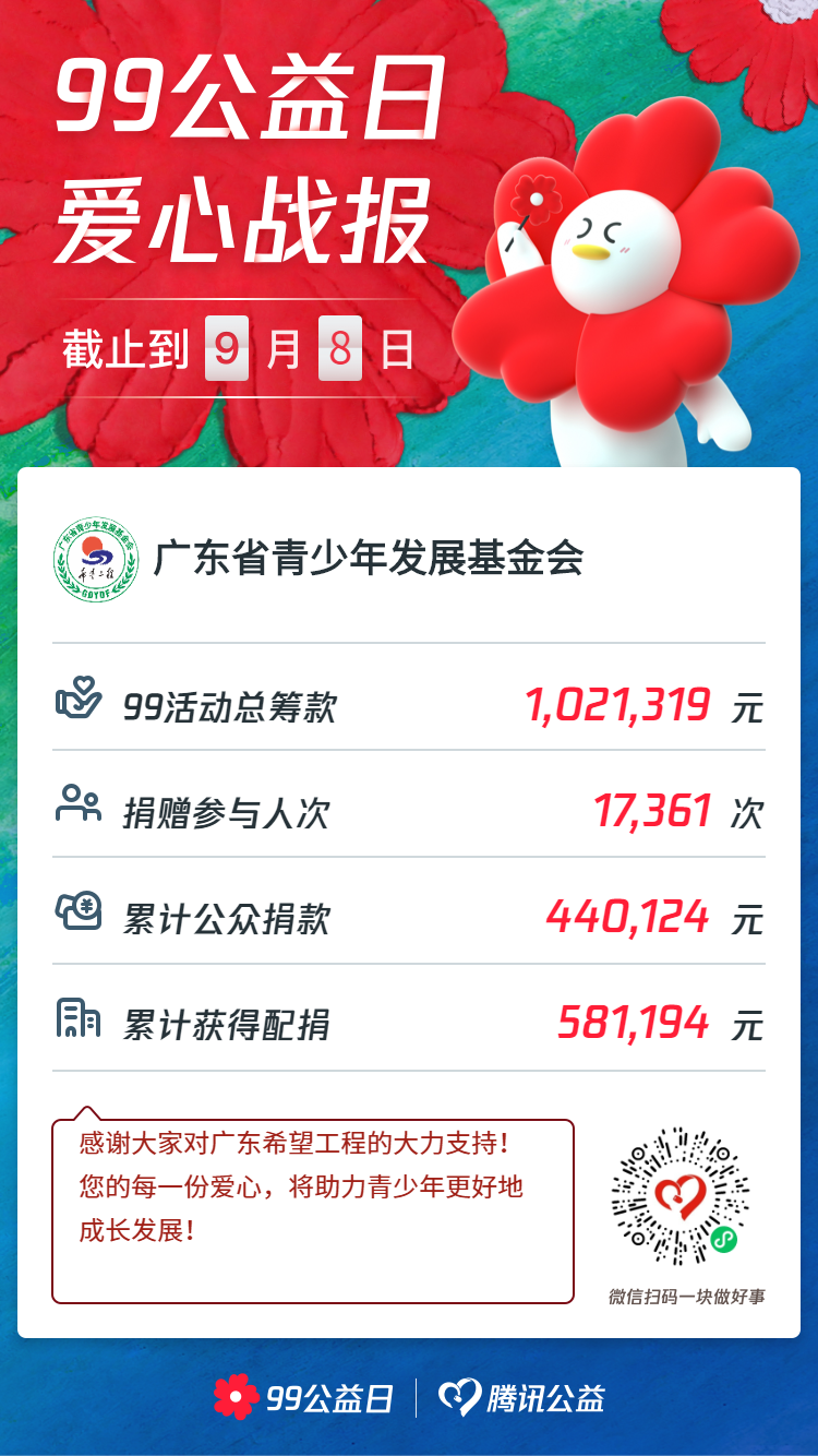 广东青基会筹款共102.13万