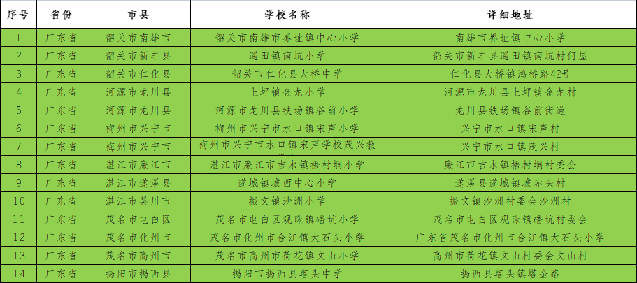 以下14所学校的幸福厨房也已完工