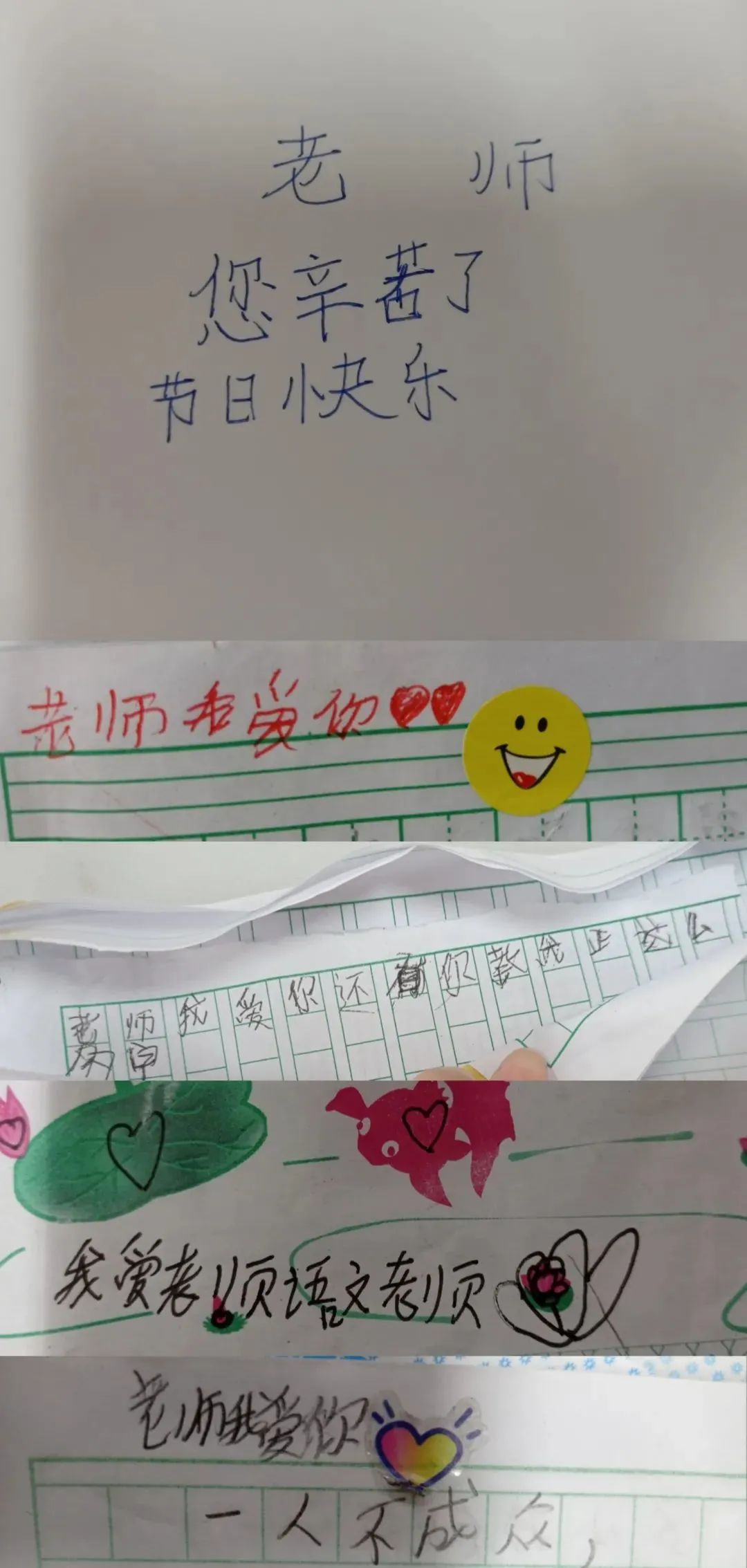 第一节课开始我已经能够从容进行教学活动,淡定安排班级管理工作。和学生越来越熟悉,关系逐渐热络,他们真正地接受了我,这让我很欣慰。不知道什么时候开始,腼腆的他们‘无师自通’地向我表达爱意。而我一边感动,一边‘可恶’地公开处刑他们写错了哪些字。