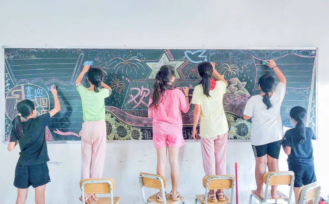 孩子们用粉笔勾画出对祖国的热爱