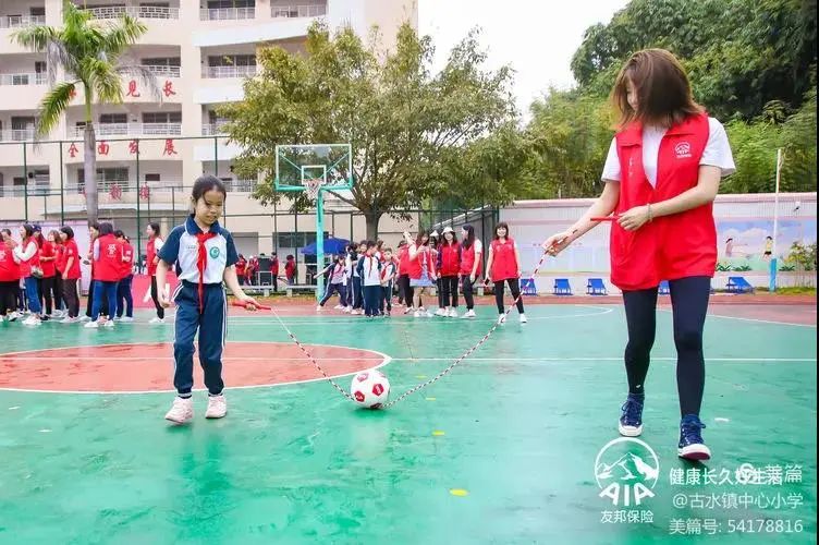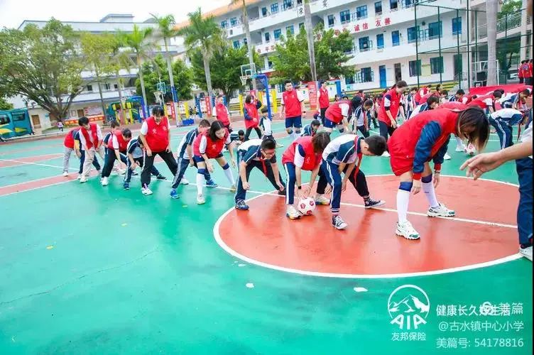 古水镇中心小学学生在友邦保险希望足球场上进行足球障碍赛