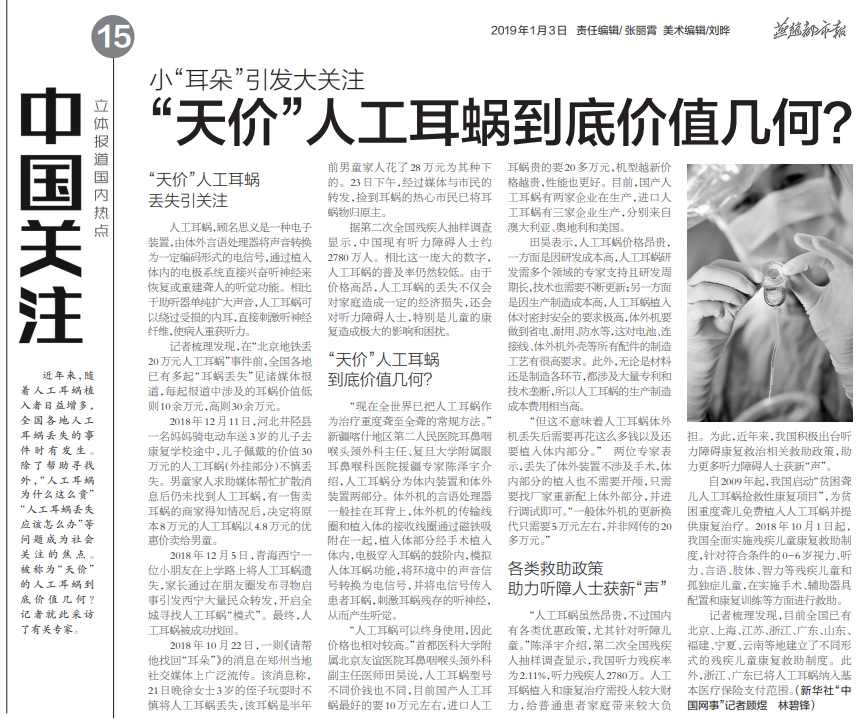 新华网:小“耳朵”引发大关注 “天价”人工耳蜗到底价值几何?