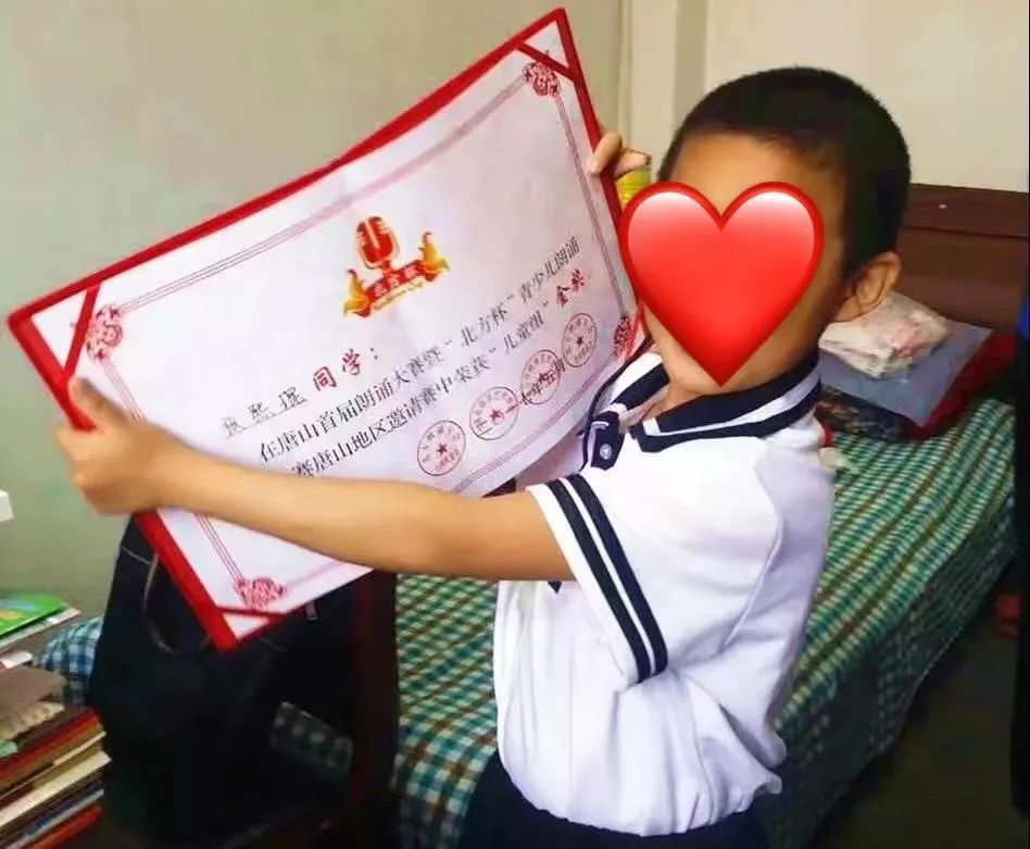 他朗诵的一首“爱是什么”,获得了首届听障儿童才艺展示大赛的一等奖