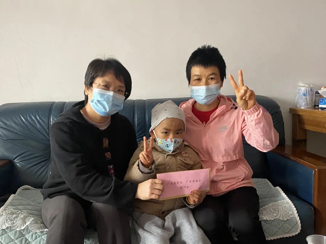 广东青基会工作人员为小军一家送去新年礼物和慰问金