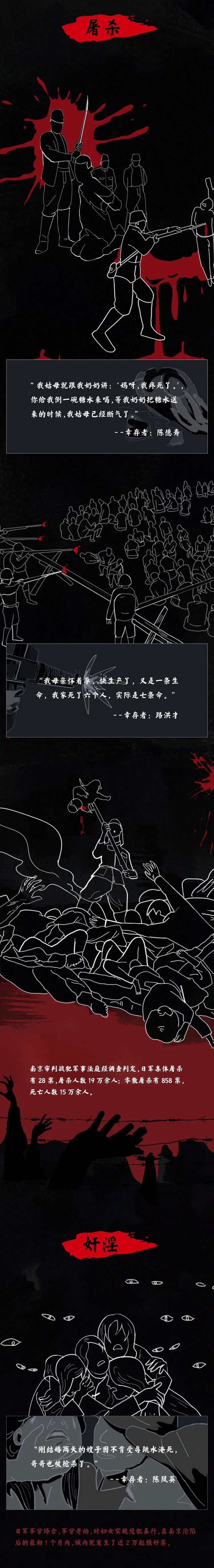 84年前的今天,侵华日军野蛮侵入南京,制造了惨绝人寰的南京大屠杀惨案,30万同胞惨遭杀戮,平均每隔12秒就有一位同胞罹难。无数妇女遭到蹂躏残害,无数儿童死于非命。