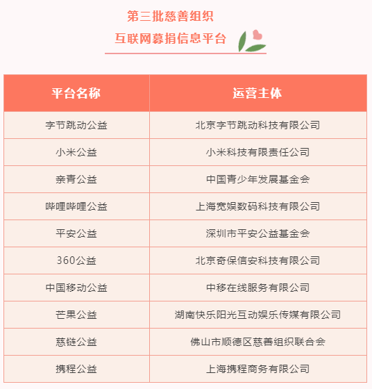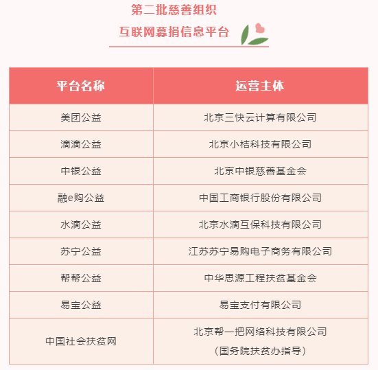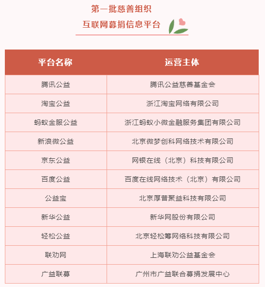 互联网募捐信息平台(共30家)