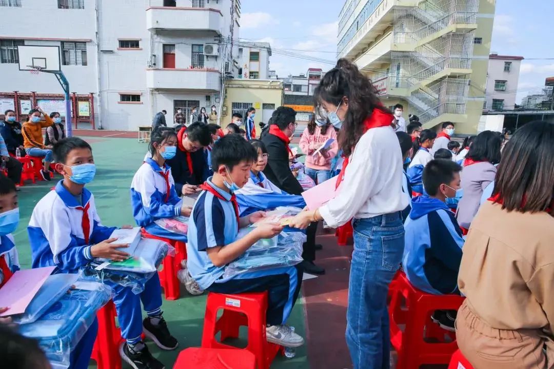 广东卓凡律师事务所团总支为参加现场会亲的学生送来一批书包、文具套装等学习用品。