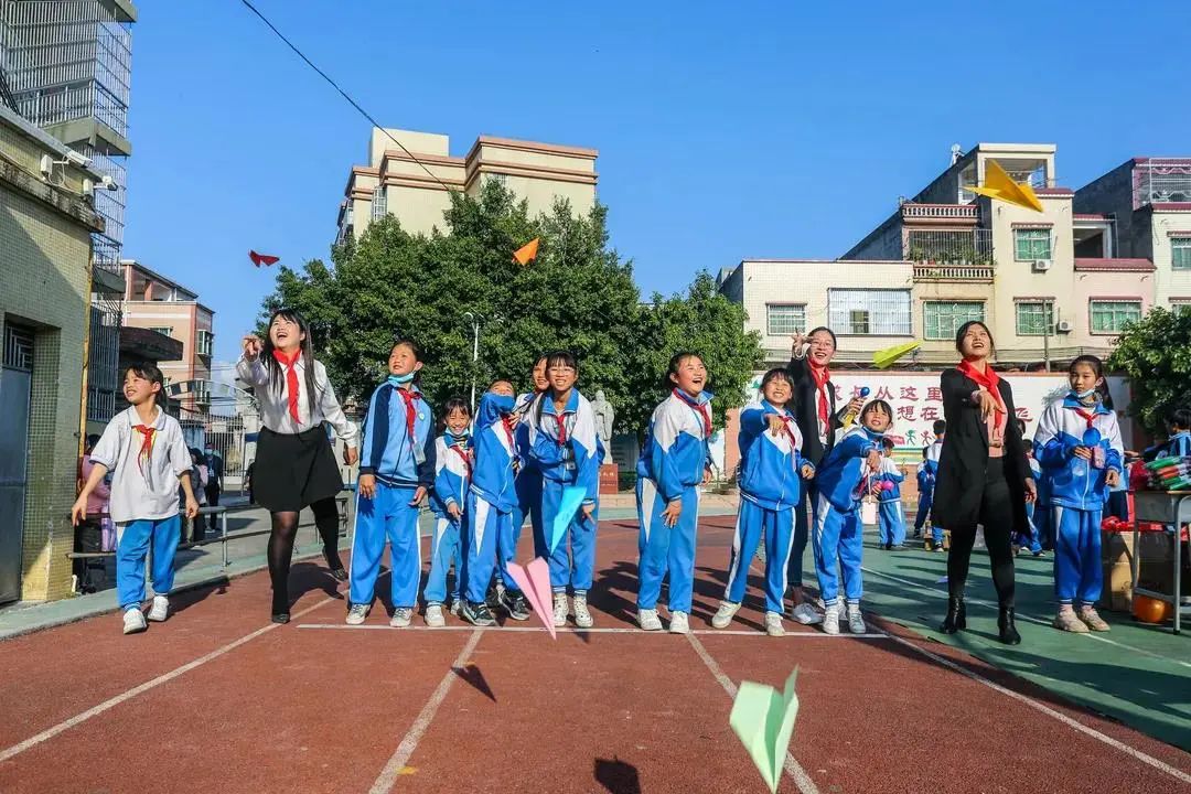爱心人士与受助学生温暖结对,共同制作搭建希望的纸飞机,放飞梦想。