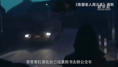 体重只有80多斤的周火生老人常常要扛着比自己还重的书赶公交车