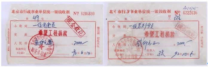 “希望工程”得到了邓小平的高度关注和支持。1990年,邓小平欣然为“希望工程”题词。1992年4月,为了动员更多人参与“希望工程”,邓小平的题词在《人民日报》上发表。1992年6月,邓小平以“一位老共产党员”的名义,委托工作人员向“希望工程”捐款3000元;10月,他再次以“一位老共产党员”的名义向“希望工程”捐款2000元。由于工作人员拒绝透露信息,中国青少年发展基金会经多方查询,才终于了解到这位“老共产党员”正是小平同志。