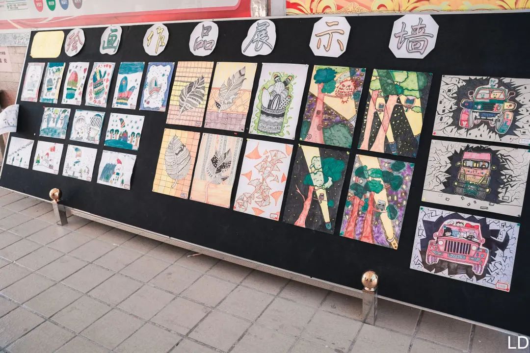 不仅学生们喜欢朱曼莉,校长、家长们也对这位新来的美术老师赞不绝口,甚至每个路过洲渚小学的村民,也都会被校门口的学生展示作品所吸引。