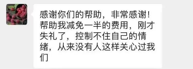 患者母亲给工作人员发来的信息