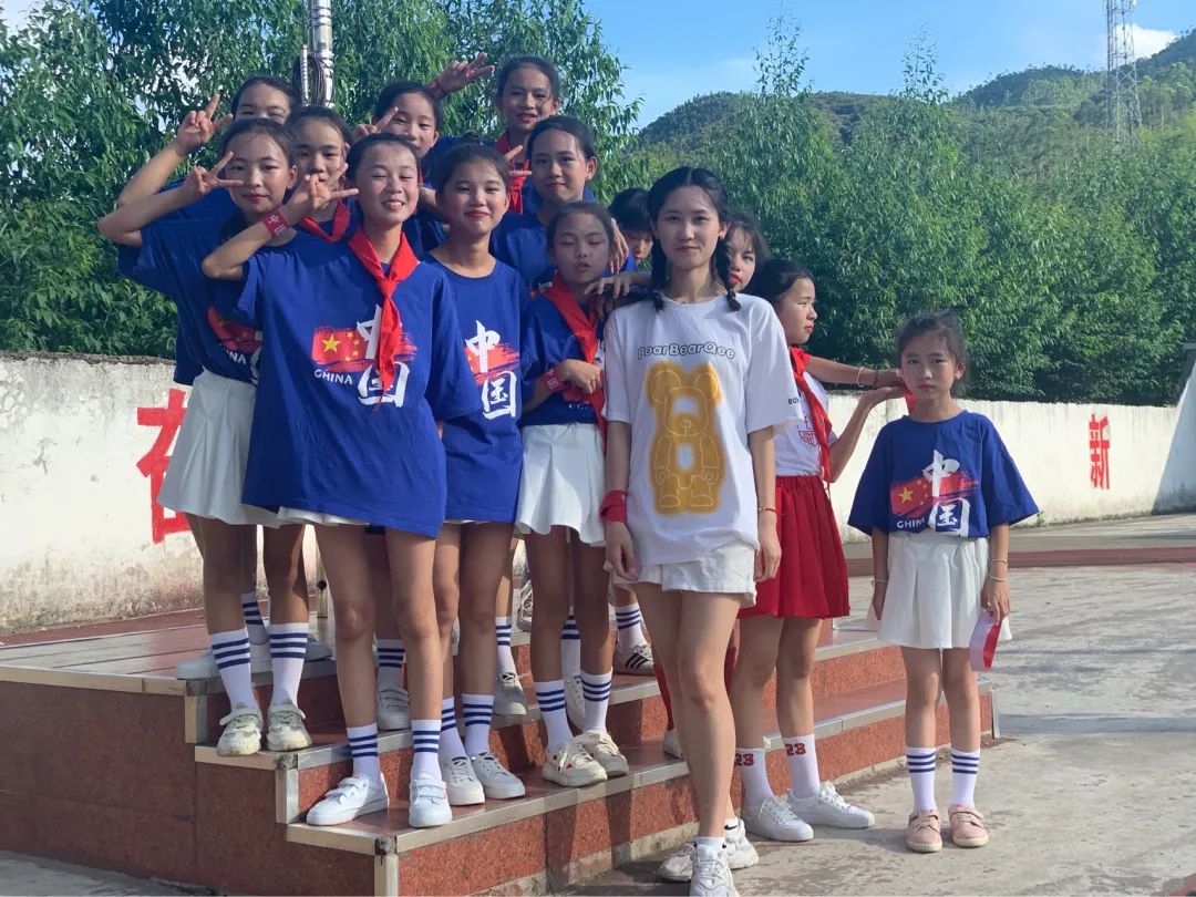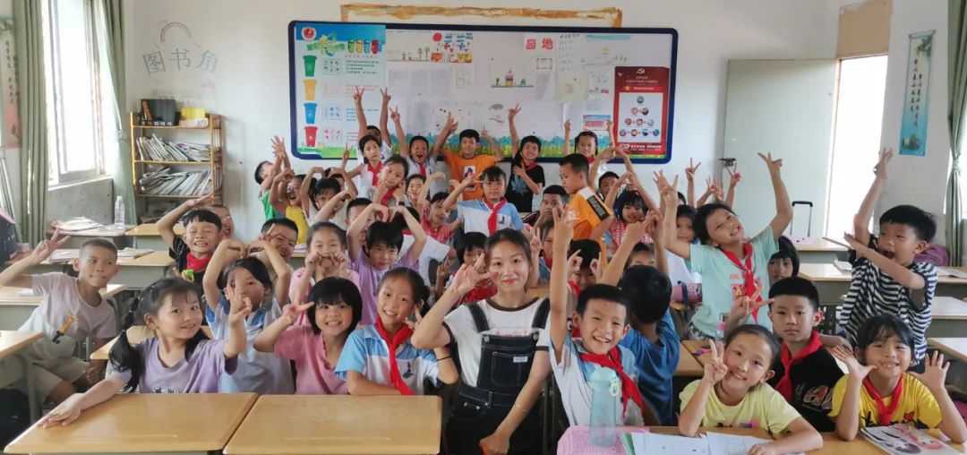 揭阳市普宁市梅林镇南阳小学支教志愿者李晓燕和她的学生们。