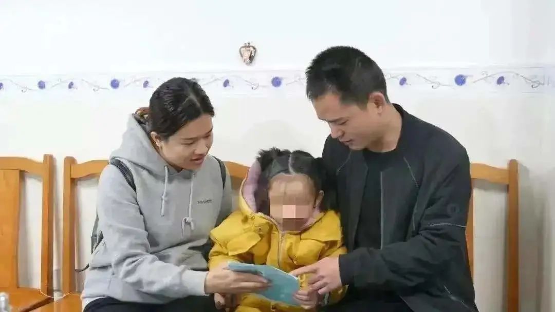 广东青基会工作人员和浩浩聊天,送给他最喜欢的奥特曼玩具。