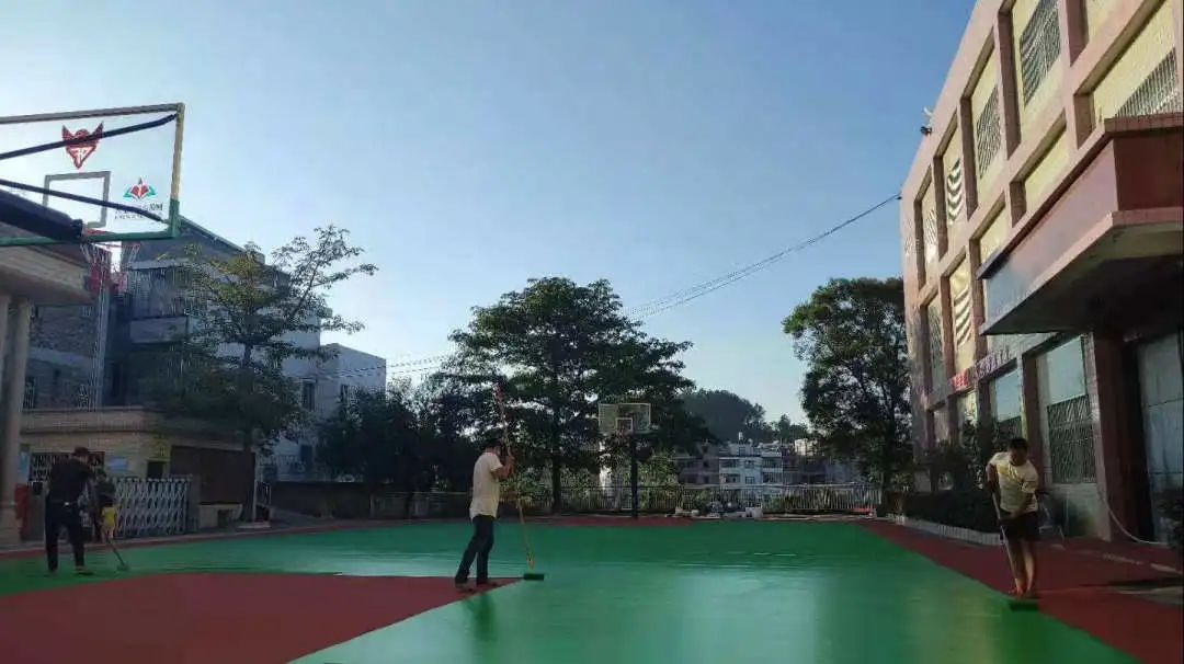转眼间又到了2020年9月开学,我惊喜地发现有些工人师傅在学校篮球场热火朝天地在施工,忙碌着给原来破旧的篮球场填平、除尘、刷地板漆、划线、安装篮球板......