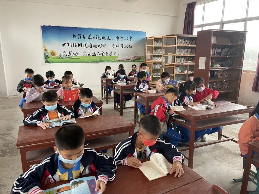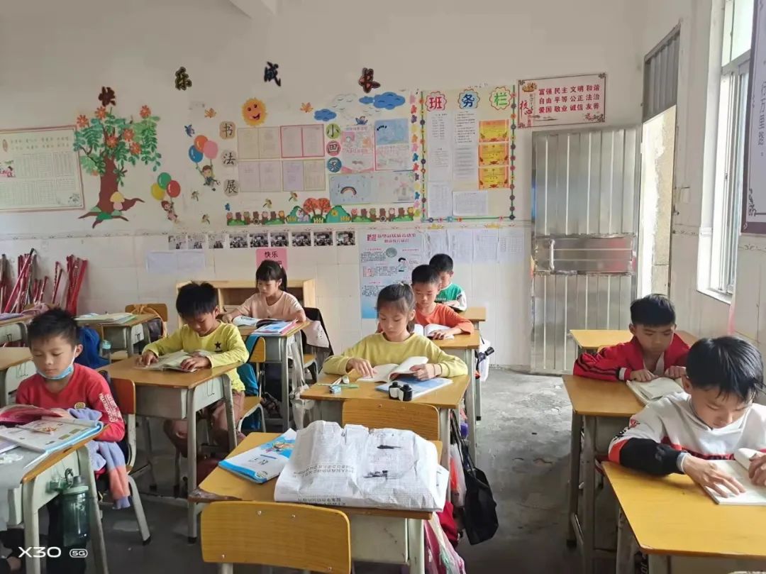 池洞镇小学和松木山小学的孩子们认真读书的样子
