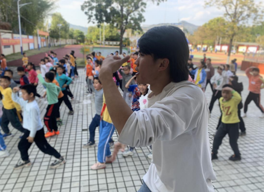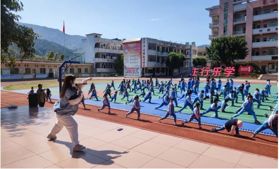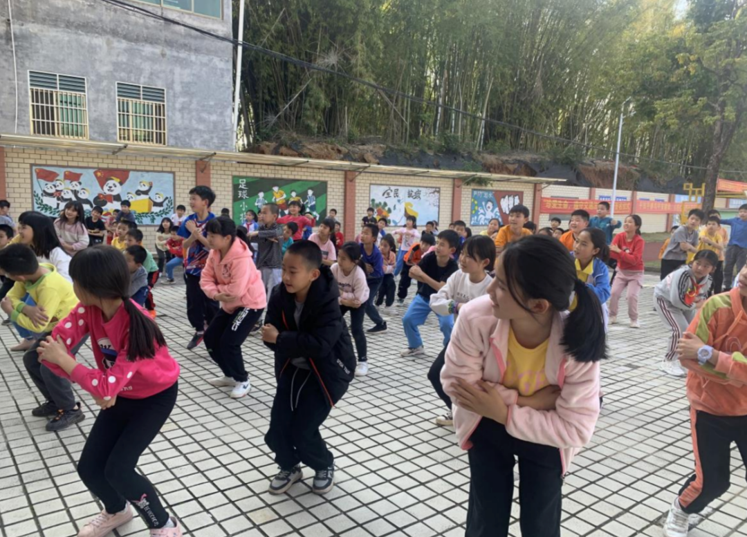 广宁县横山镇中心小学的孩子们课间和老师一起练习