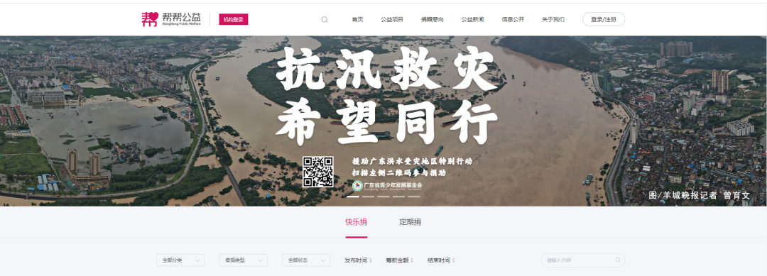 灵析、帮帮公益平台将项目作为登录页和官网首页进行推广。中国银行通过中银公益平台上线项目,动员银行员工和客户参与捐赠,截止目前,参与人次为437,捐赠金额4929.07元。希望工程“老捐方”——2004年设立的专项基金“黄继豪助学基金”捐赠5万元支持清远英德抗汛救灾。