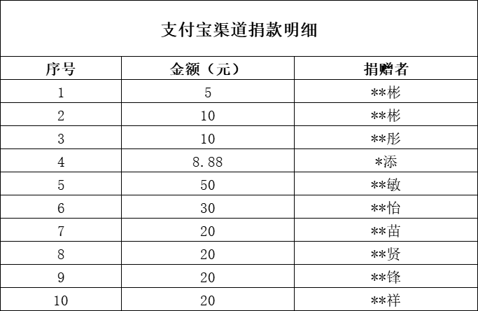支付宝捐款明细