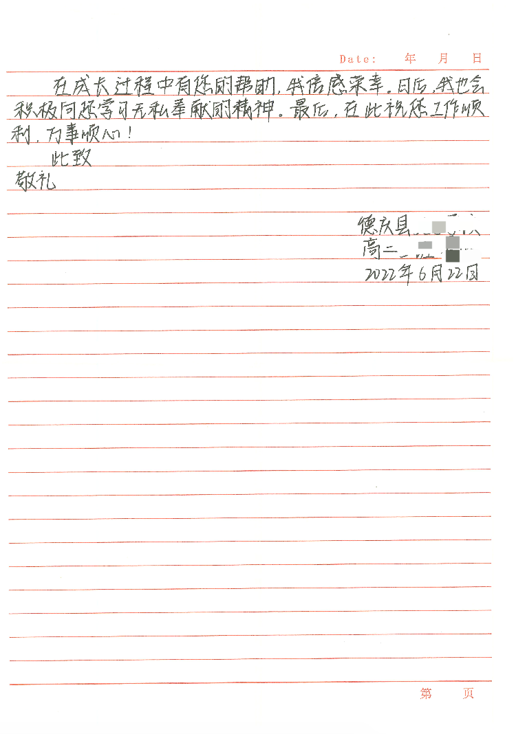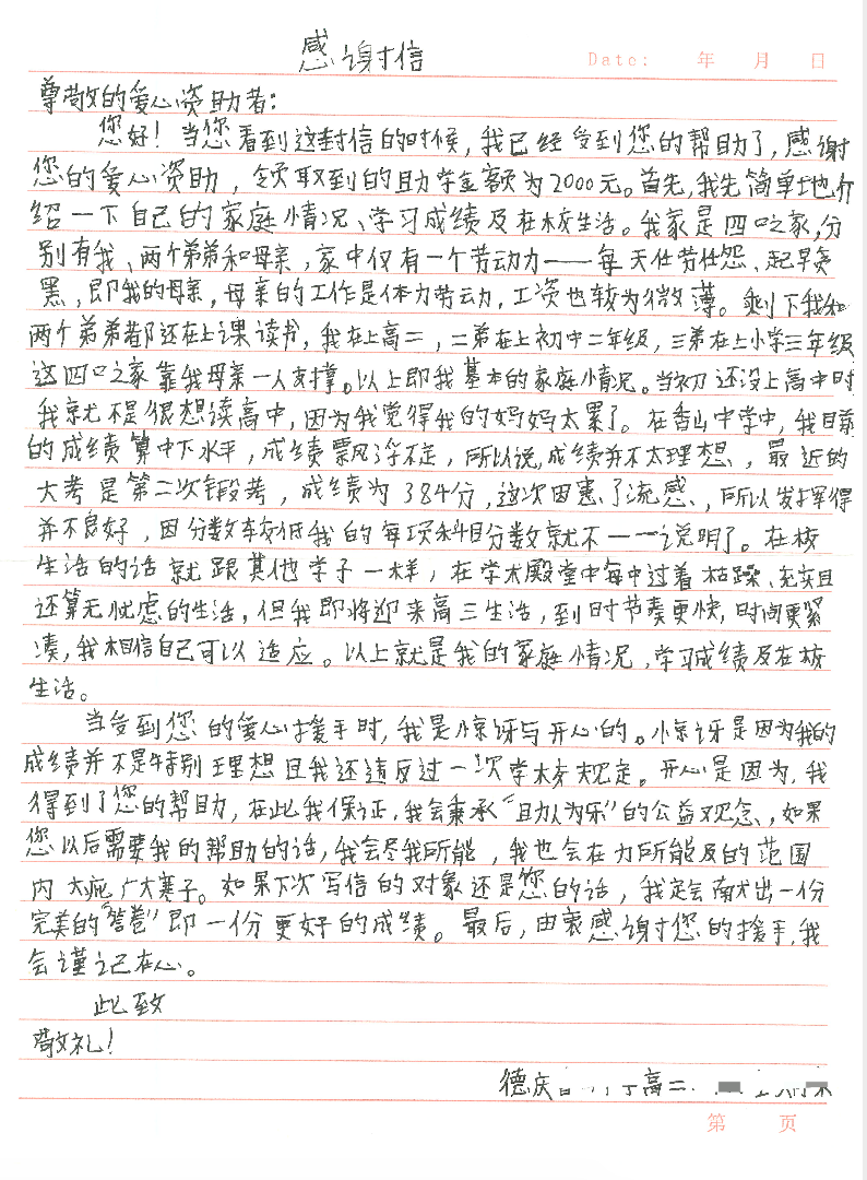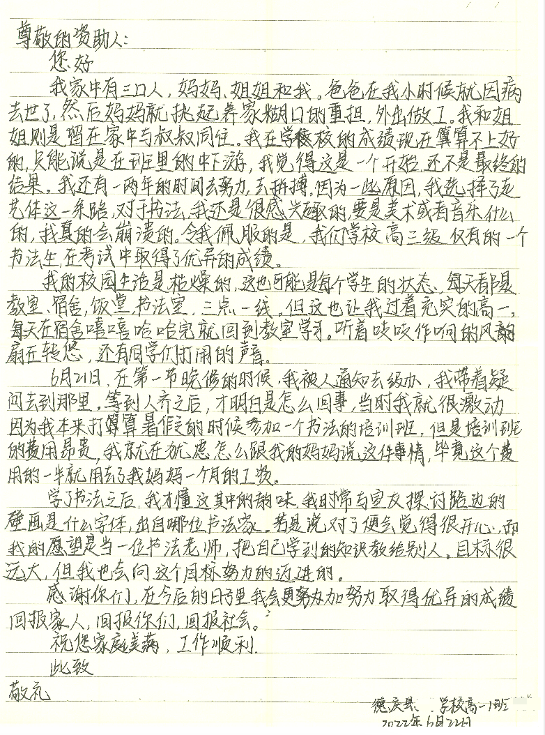 左右滑动查看其他受助学子感谢信