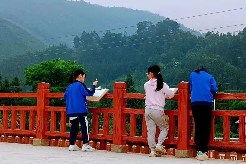 正是这样不经意的一句话,为朱玮杰提供了教学思路。他组织学生们用画笔记录下自己的眼中所见,并让自己的课堂突破了教室的局限。他经常会带着学生们出去采风,茅田界、鹰扬关、蒙洞古村、永和镇......连山的每一处秀丽景色,都有孩子们留下的足迹。
