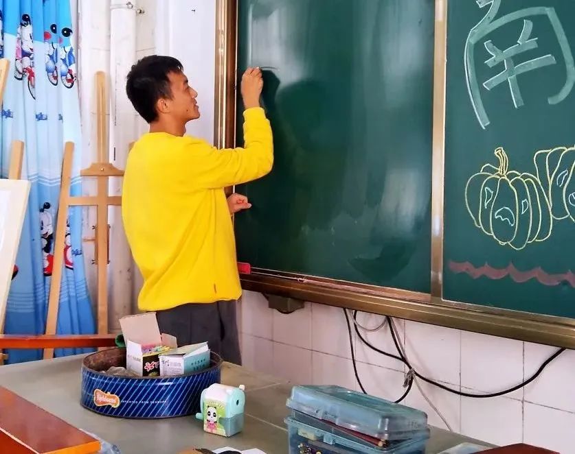 正因如此,在来到连山永和中心小学不久后,朱玮杰便萌生了成立画室的想法,以争取让对绘画有兴趣的学生获得良好的创作环境。基于永和中心小学“和美课堂”的校园文化理念,他将画室起名为“一和画室”,倾力打造校园美育文化。这间画室以和美共生为模式,以生为美,以美启智。朱玮杰不满足于创立一个普通的美术兴趣班,他更想让这间画室在乡村少年宫兴趣培育的道路上争做第一。