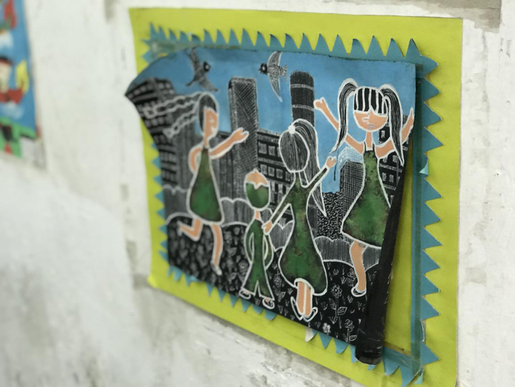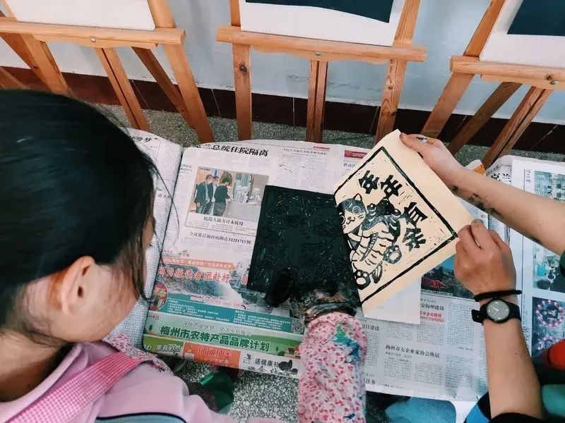 希望乡村教师计划梅州项目点支教老师黄冰在学校成立了版画艺术小组并开设了课程作品展
