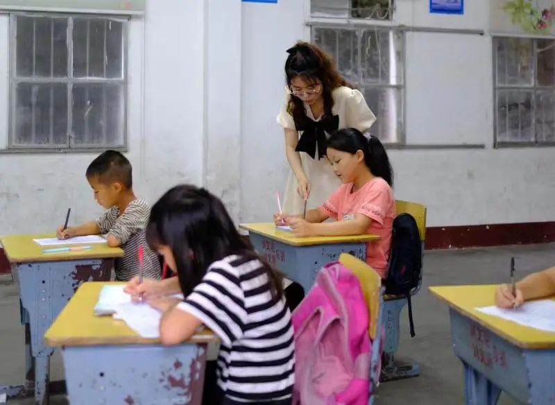 揭阳揭西县良田乡中心小学志愿者方榆娇在上课。