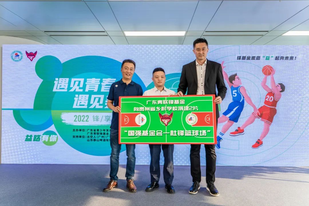 5月20日,“遇见青春·遇见美好”——广东青联“锋基金”2022“锋享之夜”活动在广州举行。现场,锋基金代表向贵州省黔东南苗族侗族自治州雷山县、台江县乡村学校捐赠杜锋篮球场,“杜锋篮球场”带来的梦想与希望之花也将在更多青少年心里、更多乡村学校、更多偏远地区绽放。