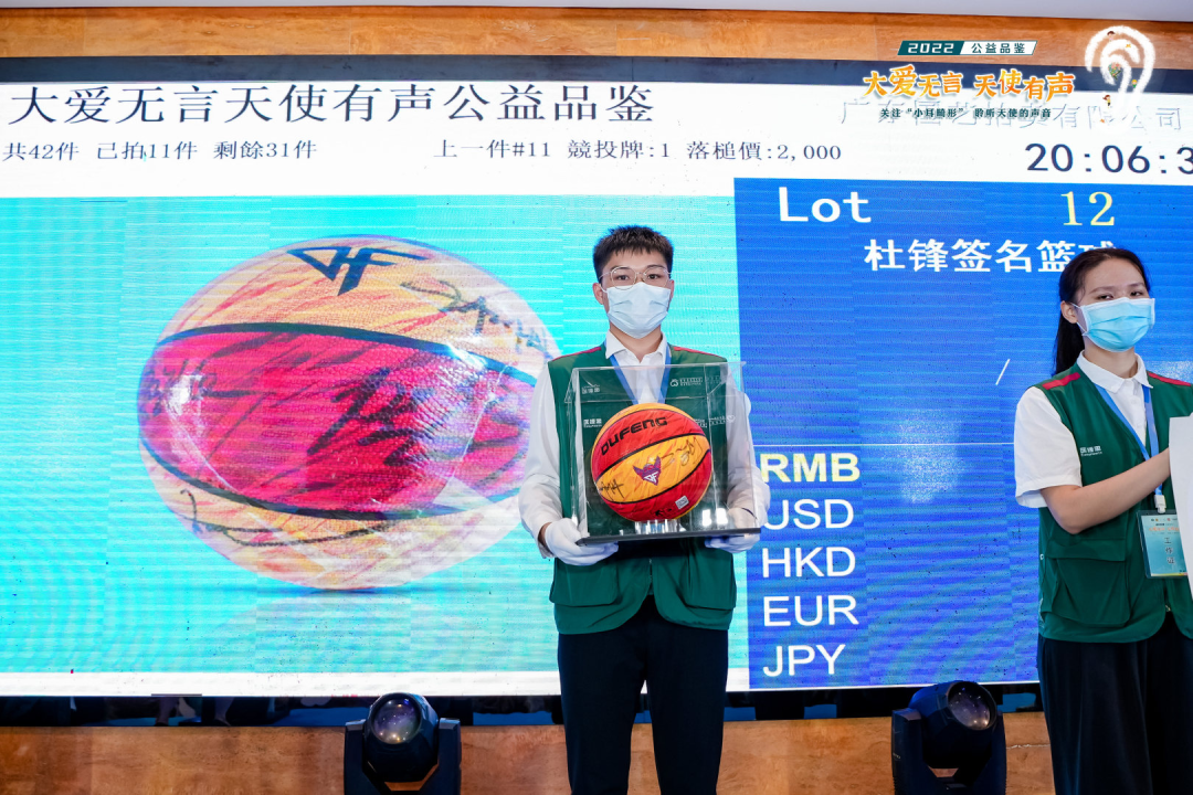 8月13日,锋基金捐赠的公益签名篮球在2022公益品鉴“大爱无言 天使有声”活动作为限时爱心拍品参与拍卖,现场获得了众多爱心人士的竞抢,一起将这份爱延续。