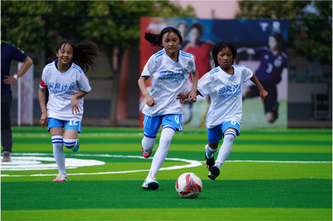 从西北到东南,两所相隔千山万水的小学因足球而产生关联。2019年,“追风计划”乡村校园女足扶持项目启动,在蚂蚁公益基金会和中国青少年发展基金会的推动下,已直接资助全国60支乡村校园女足队。过去3年中,巴楚县第三小学女足队和灌新小学女足队陆续加入“追风计划”,许多原本从未把足球列入人生计划的女孩,开始追风。