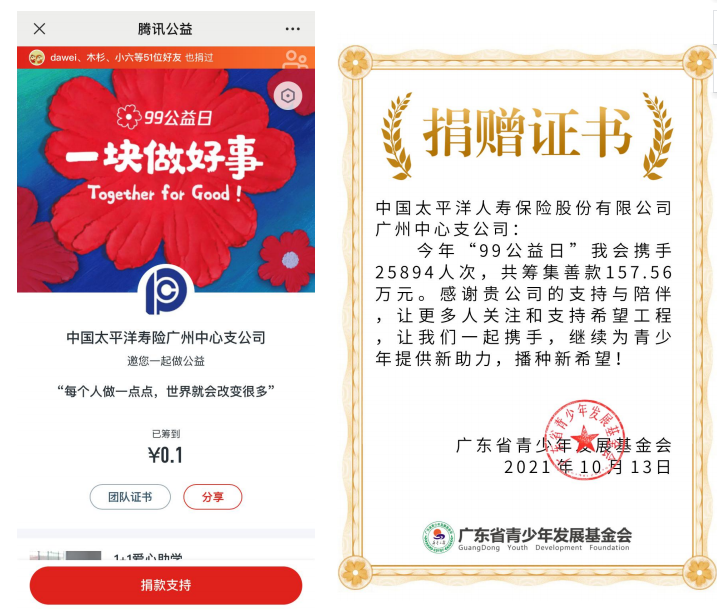 参与“一起捐”项目,企业可获得独家定制海报、定制战队名称与团体捐赠证书,并可结合机构自身制定企业“99公益日”专属激励机制。