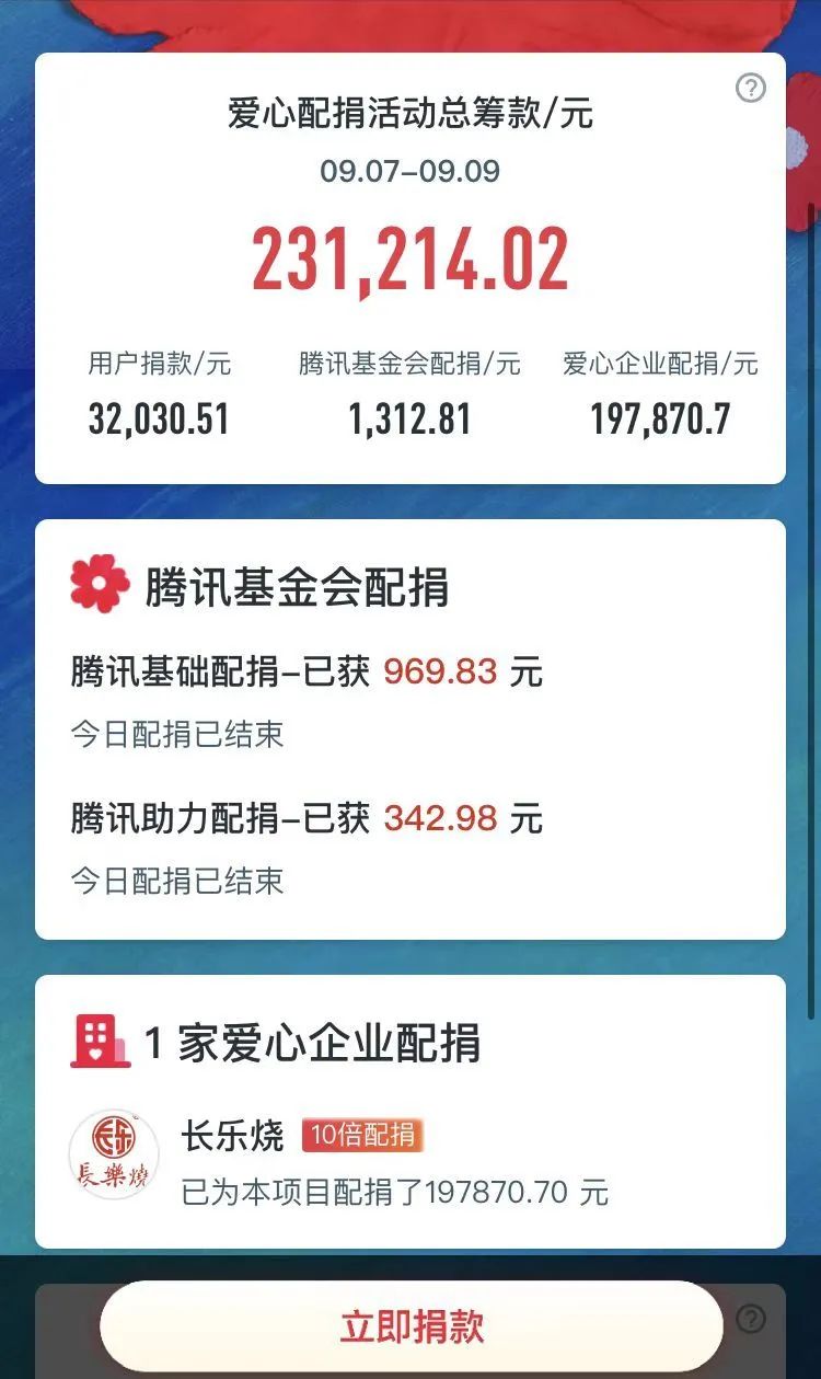 企业捐赠1万元及以上,即可发起企业“加倍金”活动。